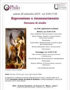 Sabato 28 settembre la Dott.ssa Laura Porta interverrà alla giornata di studio organizzata da Scuola Philo sul tema dell’espressione e del riconoscimento. Per iscrizioni si veda la locandina allegata