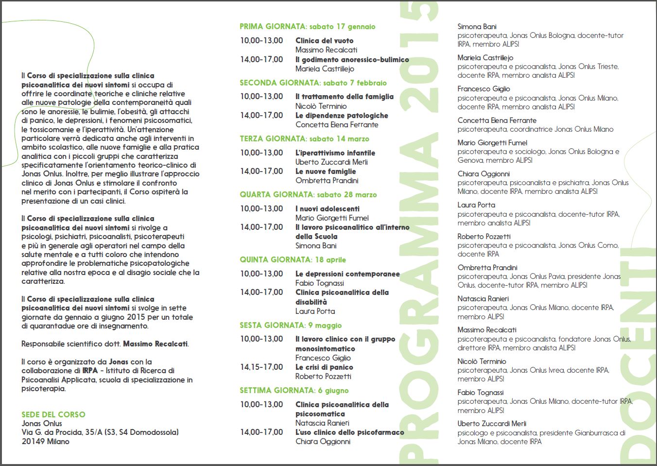 Sabato 18 aprile la Dott.ssa Laura Porta terrà un insegnamento sulla clinica della disabilità al Corso di Specializzazione sulla clinica dei nuovi sintomi, a Jonas Milano.