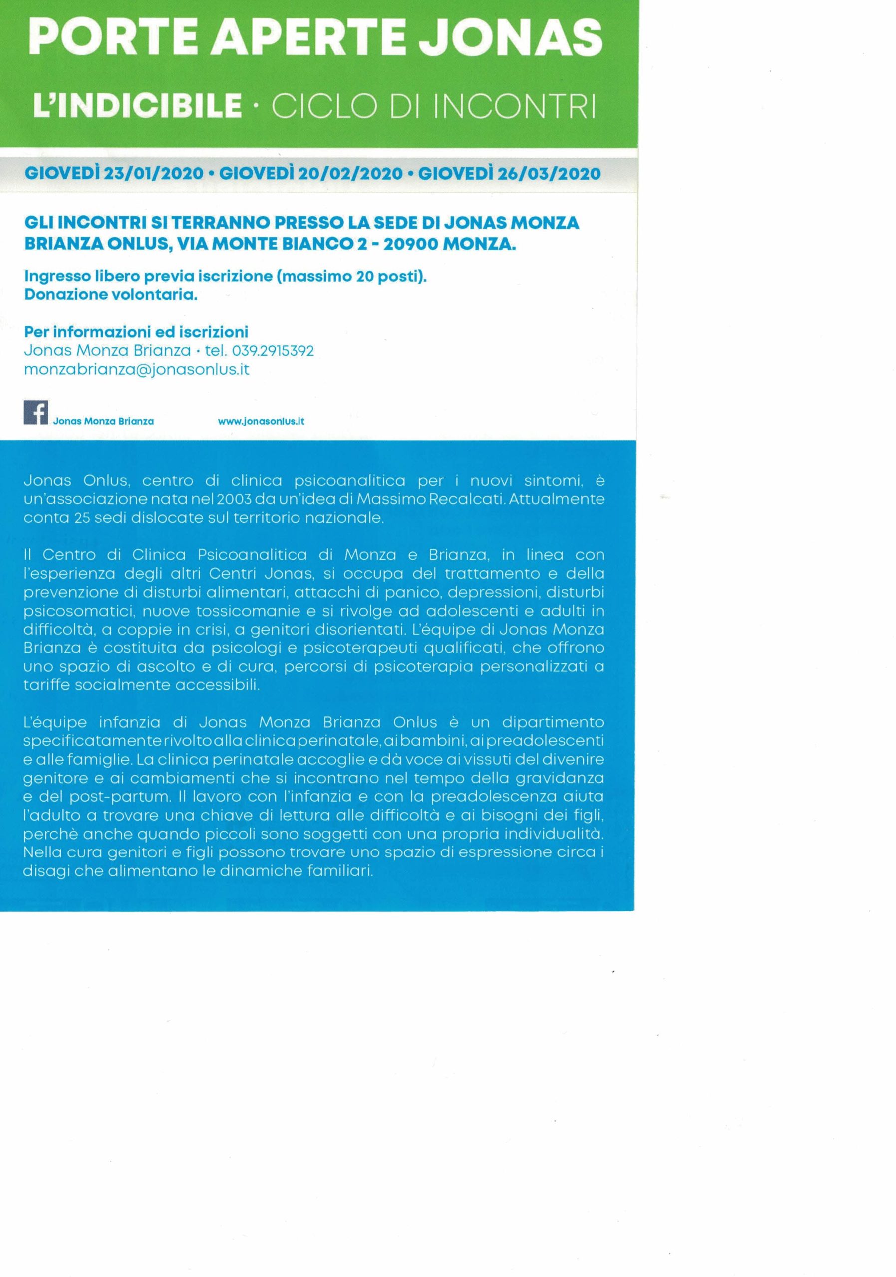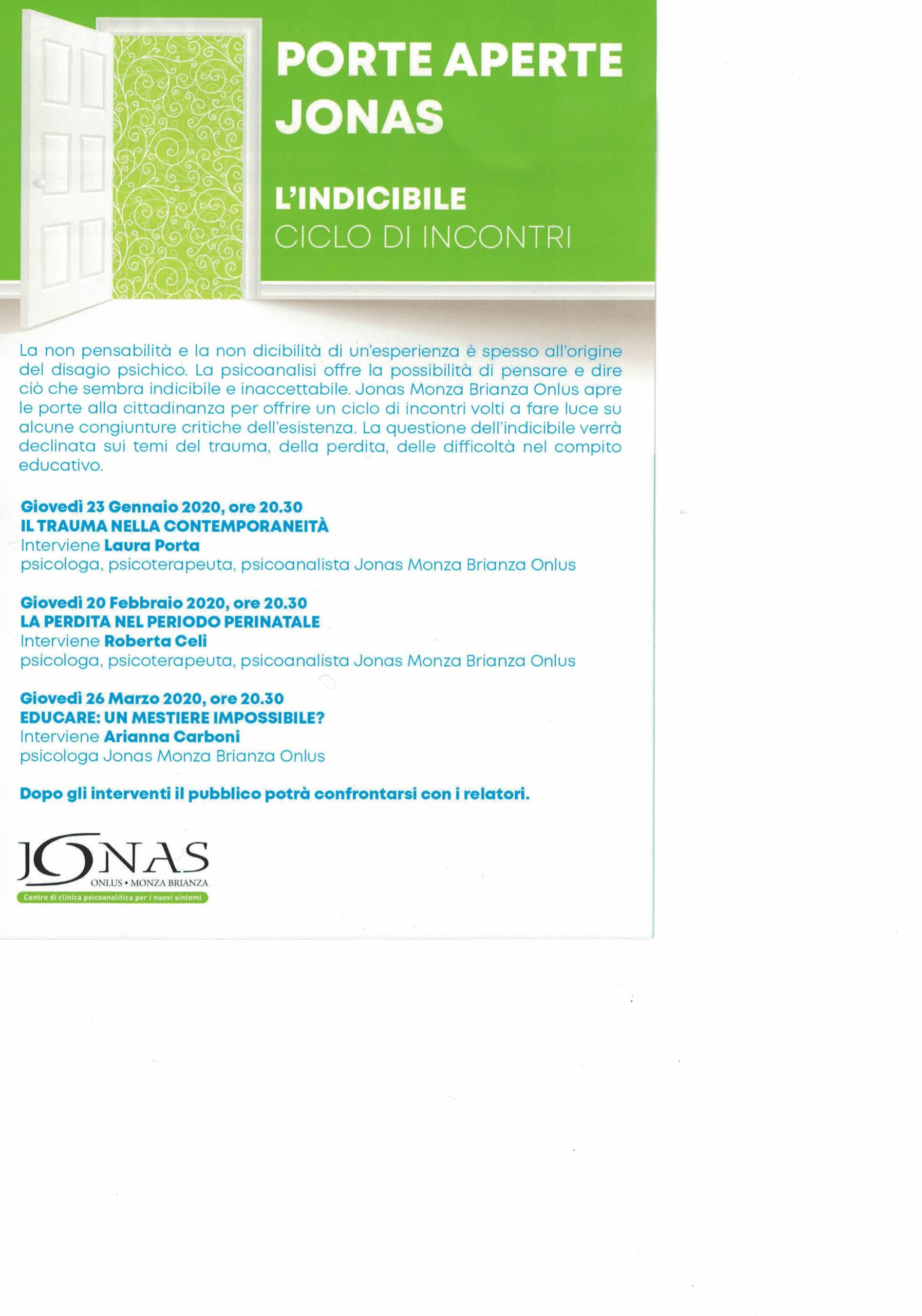 Giovedì 23 gennaio 2020 alle ore 20,30, nell’ambito del ciclo di incontri “PORTE APERTE JONAS” sul tema dell’indicibile, la Dott.ssa Porta terrà una conferenza presso la sede di Jonas Monza Brianza, in via Monte Bianco 2 a Monza su “Il trauma nella contemporaneità”. Ingresso libero fino a esaurimento posti, è necessario iscriversi.