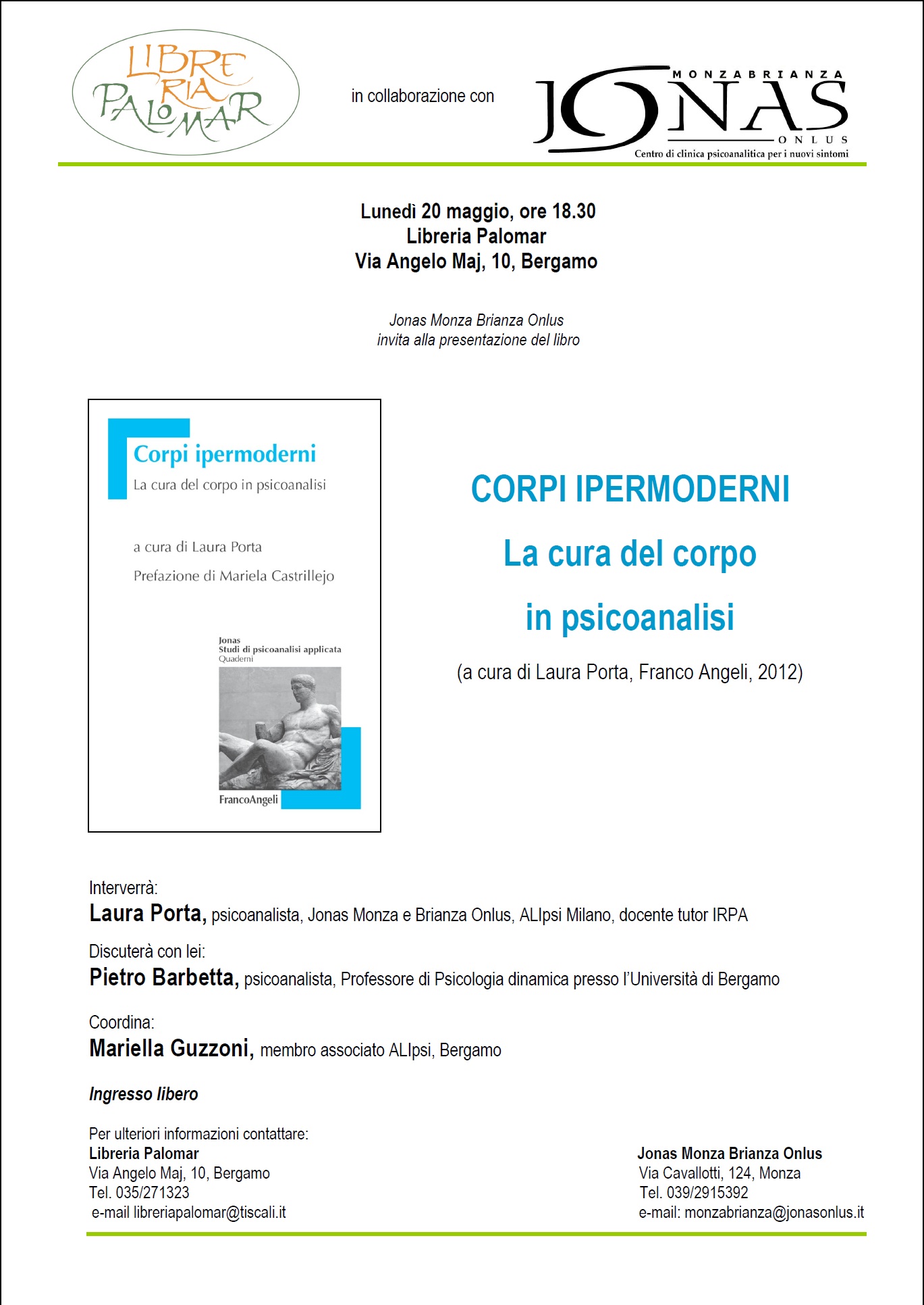 Lunedì 20 maggio, ore 18.30. Libreria Palomar, Via Angelo Maj, 10, Bergamo