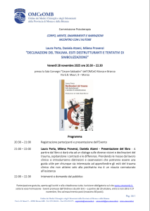 Venerdì 28 novembre alle 20:30 la Dott.ssa Porta presenterà il suo libro “Declinazioni del trauma. Esiti destrutturanti e tentativi di simbolizzazione” presso l’Ordine dei Medici e Odontoiatri di Monza. Ingresso gratuito previa iscrizione obbligatoria sul sito www.omceomb.it sotto la voce Formazione – Eventi promossi dall’Ordine e altri Enti, entro e non oltre il 27 novembre fino ad esaurimento posti