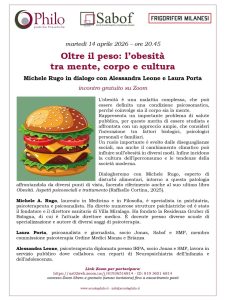 Martedì 14 aprile alle ore 20:45, la Dott.ssa Laura Porta presenterà il libro di Michele Rugo: “Obesità. Aspetti psicosociali e trattamento”. Con l’autore e la collega Alessandra Leone dialogheranno intorno al tema “Oltre il peso: l’obesità tra mente, corpo e cultura”.